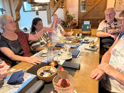 Volierentag 2025 in Interlaken. Wir danken Christine und Gody Gafner recht herzlich für das kurzfristige Einspringen. Wir durften einen wunderschönen und gastfreundlichen Tag bei Ihnen verbringen. Die Mitglieder hatten Einblick in die Schnitzereien und die Wellensittichzucht. Das kulinarische durften wir im Restaurant Laterne geniessen. Wir danken nochmals recht herzlich für den gemütlichen Tag.